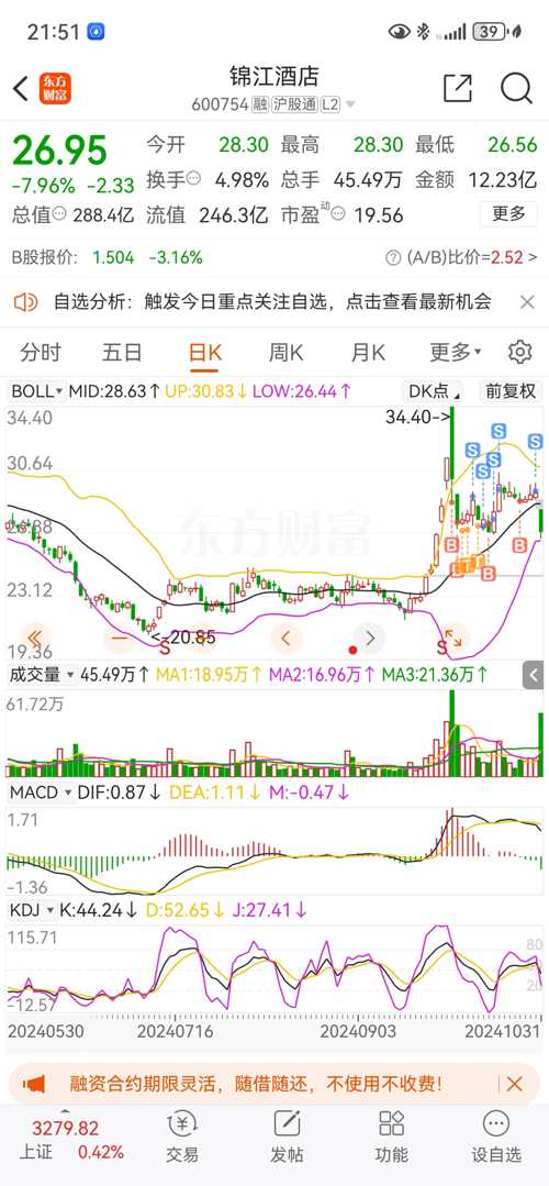 2、技術(shù)面分析:從股價(jià)走勢(shì)來(lái)看,錦江酒店股票呈現(xiàn)出穩(wěn)健上升的態(tài)勢(shì),反映了市場(chǎng)對(duì)其未來(lái)發(fā)展前景的樂(lè)觀預(yù)期。