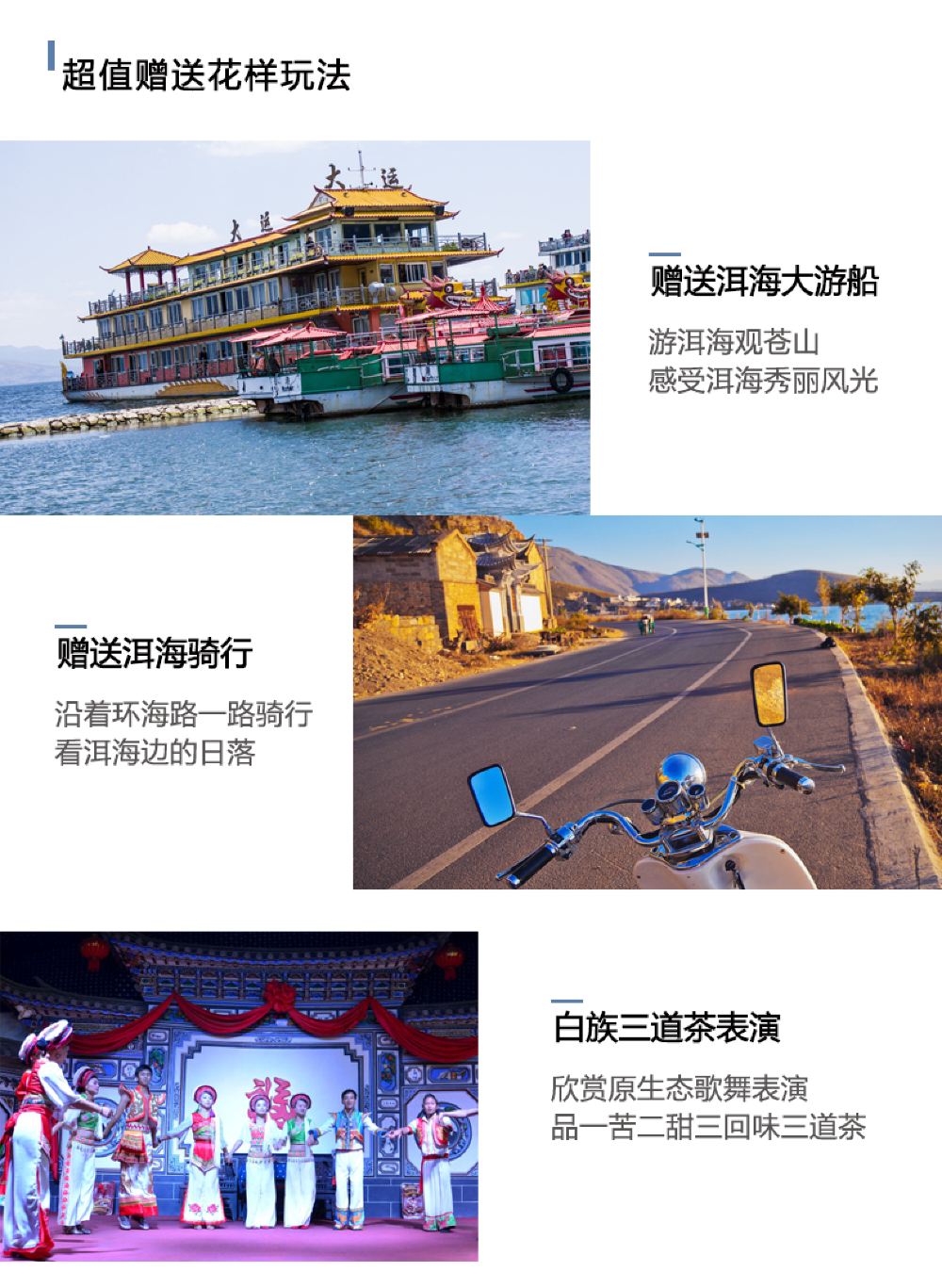 2、當(dāng)?shù)芈眯猩纾簠⒓勇眯猩缃M織的洱海游團(tuán),更加便捷省心。