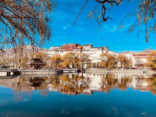 a. 長海:九寨溝最大的湖泊,水色碧藍,倒映著周圍的秋色。