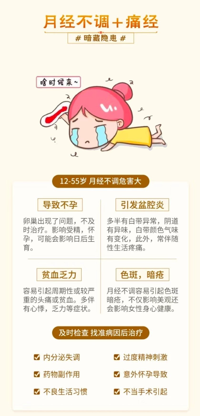 4、心理健康問題:月經(jīng)不規(guī)律可能引發(fā)焦慮、抑郁等心理問題,影響女性的生活質(zhì)量。