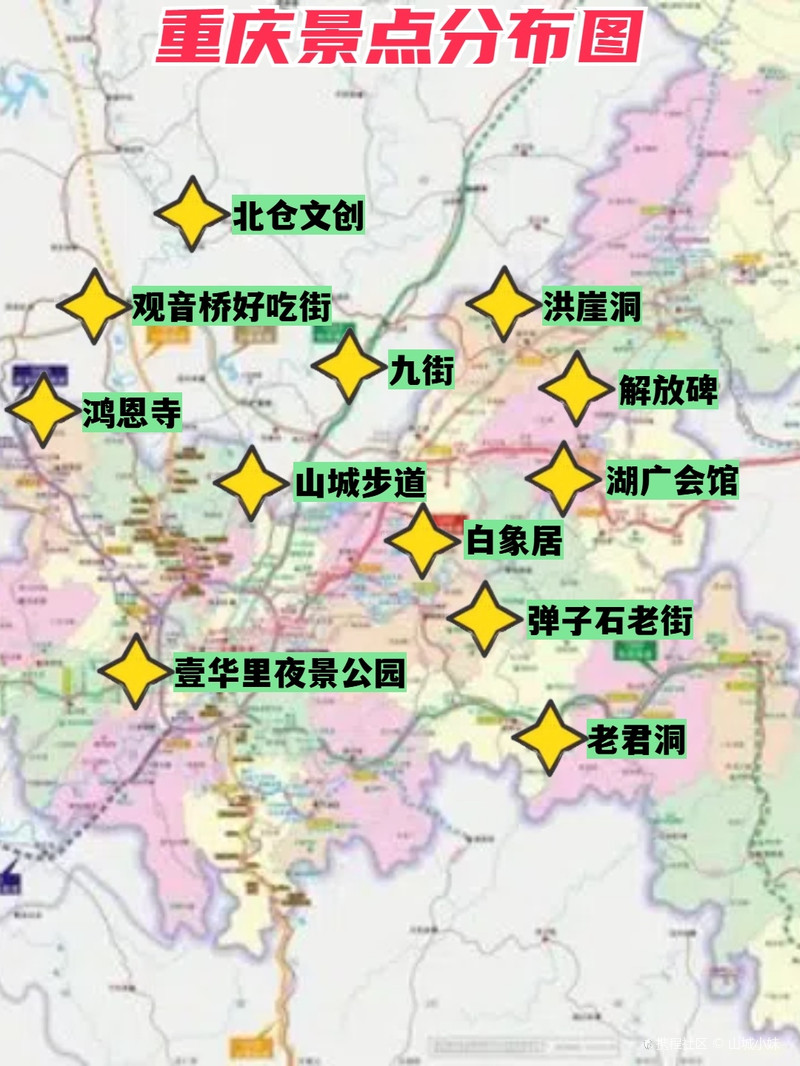 摘要:重慶景點地圖分布圖展示了山城的美麗之旅。通過這張地圖,游客可以方便地了解重慶各大景點的位置,規(guī)劃自己的行程。重慶以其獨特的山水景觀、豐富的歷史文化和美食著稱,吸引了眾多游客前來探索。這張分布圖將幫助游客更好地領略山城的魅力,留下難忘的旅游回憶。